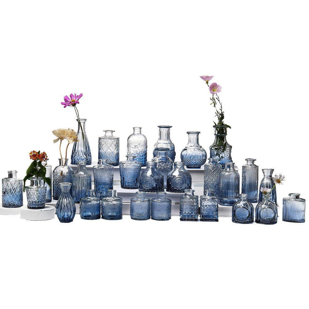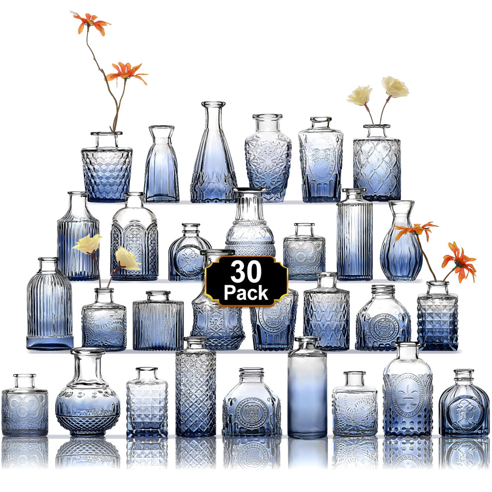 Glass Bud Vase Set of 30 Small Flower Vases Glass Vases for Centerpieces Vintage Home Table Decorations Bud Vases (30 Pcs Blue)