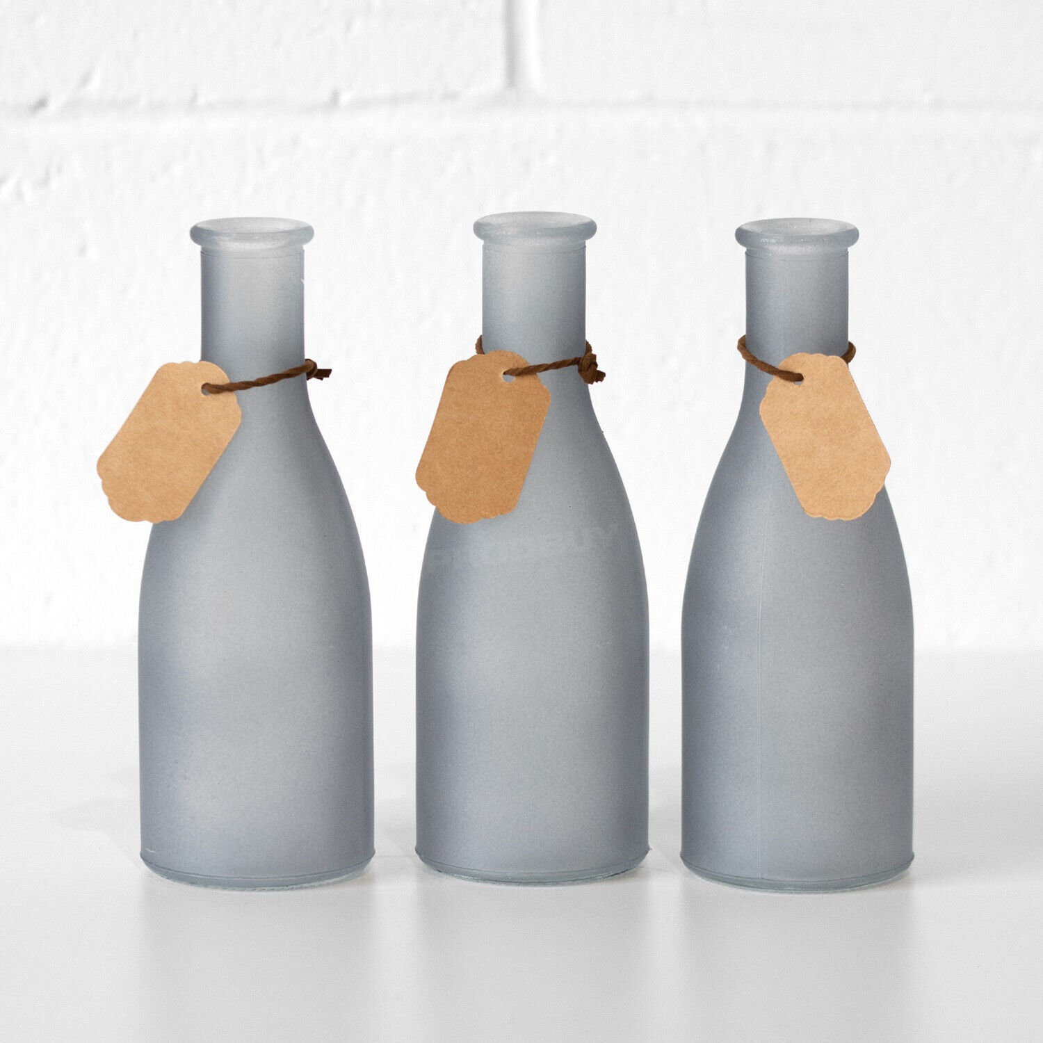 Set of 3 Small Grey Glass Bud Vases Bottles Vintage Home Decor Wedding Table