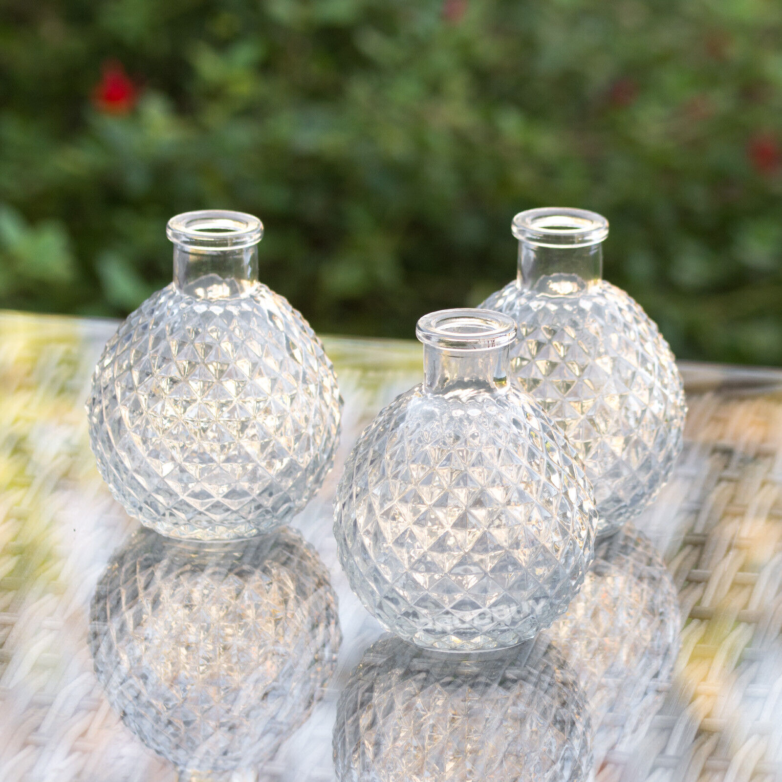 Set of 3 Small Glass Bud Vases Ball Shaped Tapered Candlestick Candle Holders