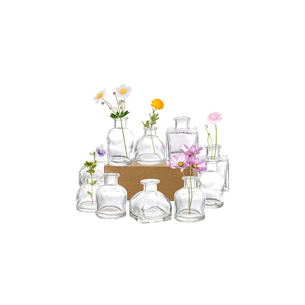 Hedume Set of 10 Small Glass Flower Vases, Clear Glass Bud Vases, Decorative Rustic Floral Vases, Mini Table Floral Vase for Home Decor Centerpieces, Events, Vintage Look
