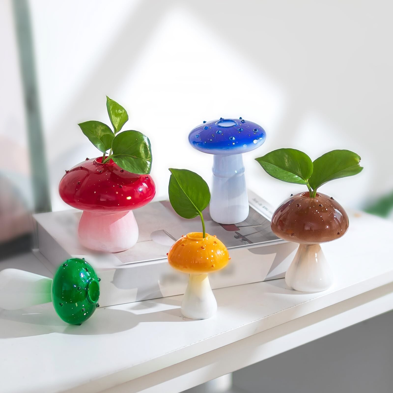 Set of 5 x Mushroom Vase for Flowers, Small Glass Vases, Fungi Multi Colour Gift