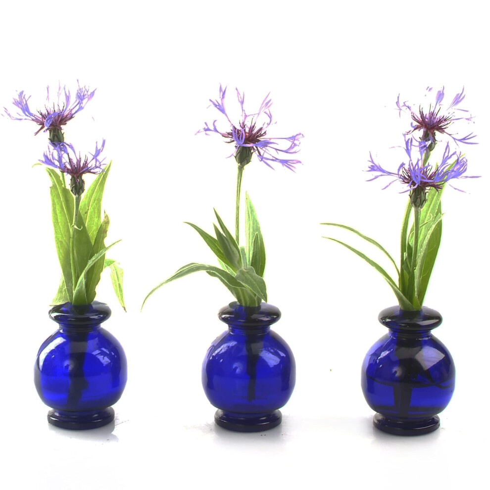 Enigma Supplies Cluster of 3 Small Glass Vases in Cobalt Blue Suitable for a Single Flower Bud Vases
