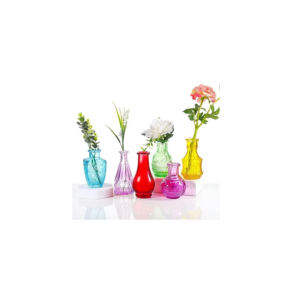 Coloch Set of 10 Colored Bud Vases, Assorted Small Glass Flower Vases Vintage Carved Floral Vase Single Bud Vase in Bulk for Centerpieces, Parties, Wedding Decoration, Office, Home
