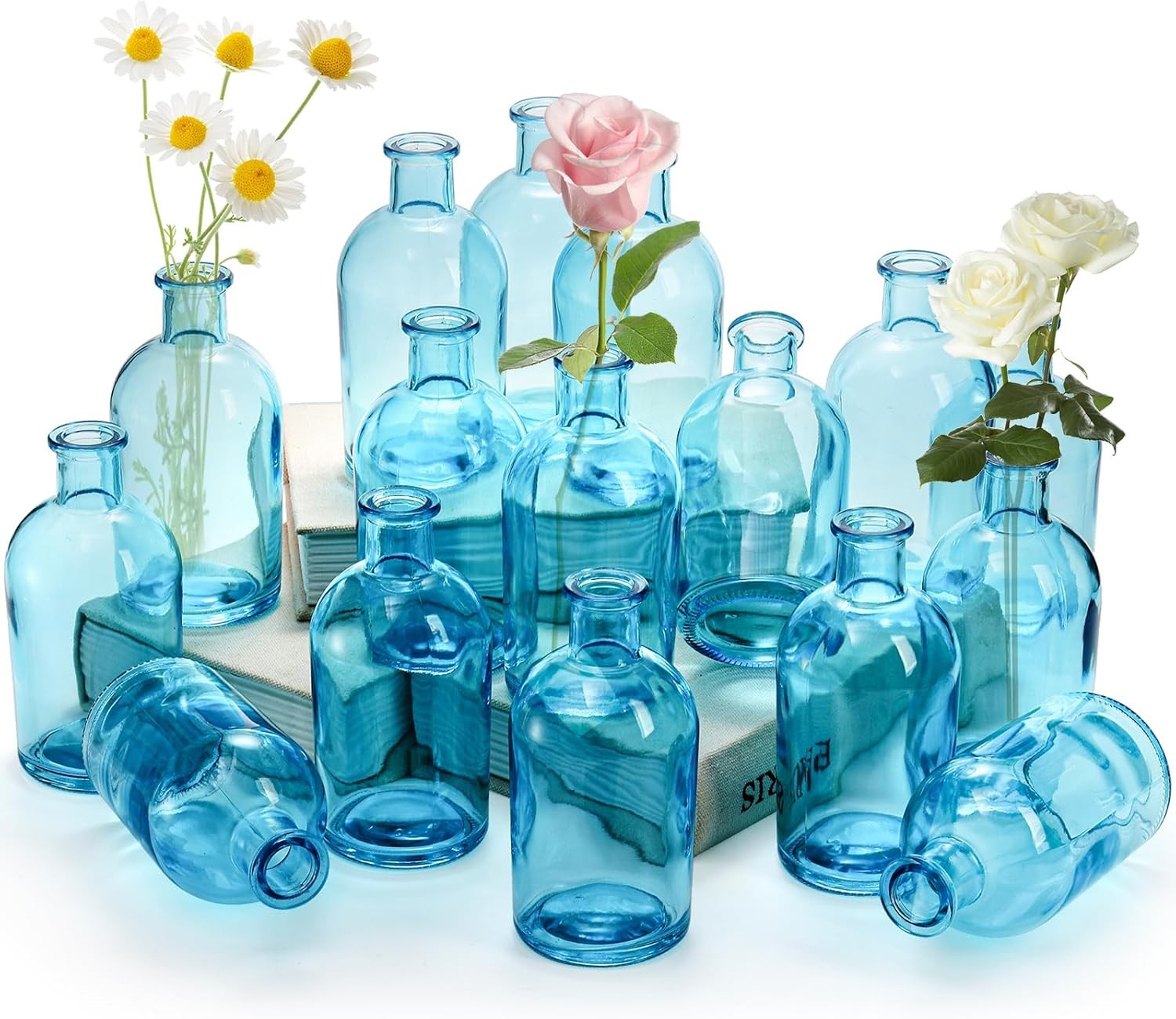 Mini Vase Set - 15pcs Small Glass Bud Vases for Flowers, Vintage Style for Deco