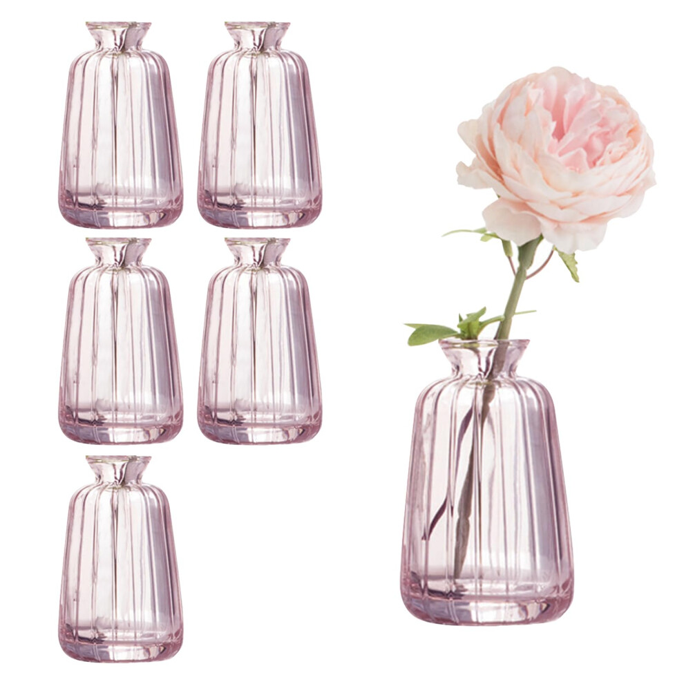 Pack of 6 Small Glass Vases for Table Decoration, Mini Vases Flower Vase Set for Wedding Table Decoration (11 x 6.5 cm, Pink)