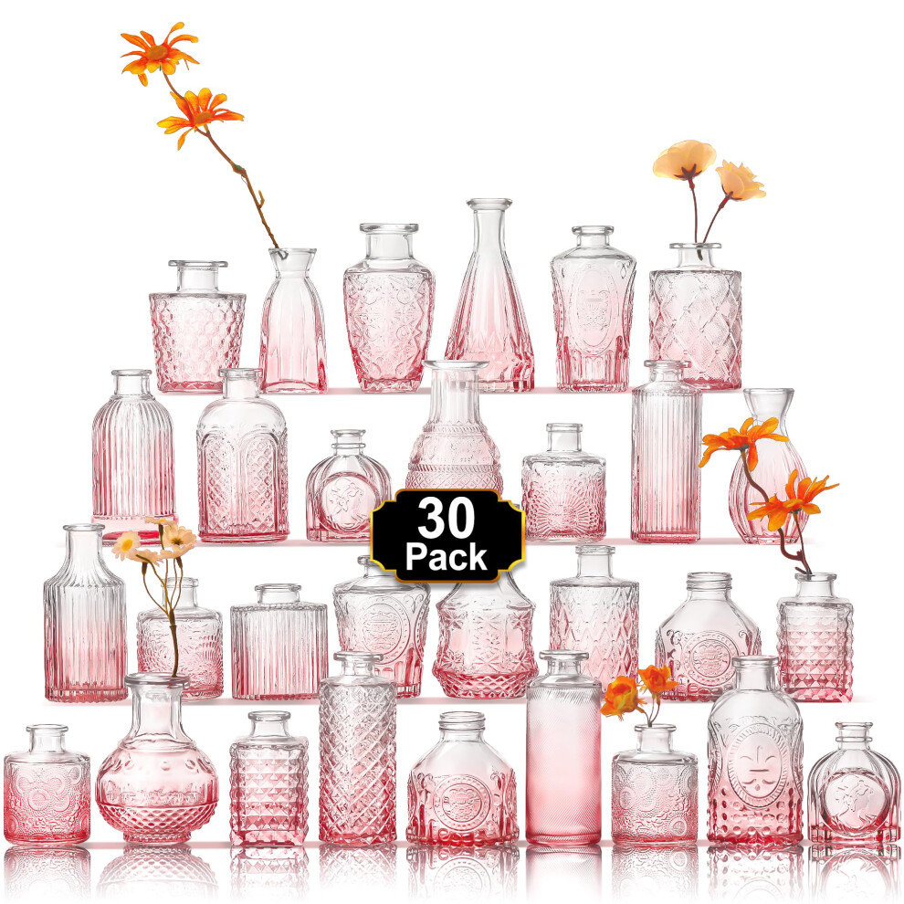 Arme Bud Vase Set of 30, Pink Vases in Bulk Bud Vase for Flower Small Glass Vases for Wedding Centerpieces, Vintage Cute Mini Flower Vases, Home Table Flower Decor
