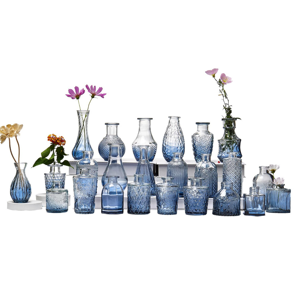 Glass Bud Vase Set of 24 Small Flower Vases Glass Vases for Centerpieces Vintage Home Table Decorations Bud Vases (24 Pcs Blue)
