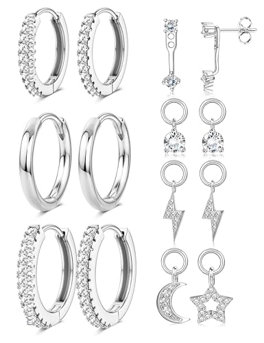 ZXLIHS Small Gold Plated Hoop Earrings for Women with Charm - Hypoallergenic Cartilage Earring Sets for Multiple Piercing Ears Silver Hoops Stud Earring Stacks Helix Conch Jewelry