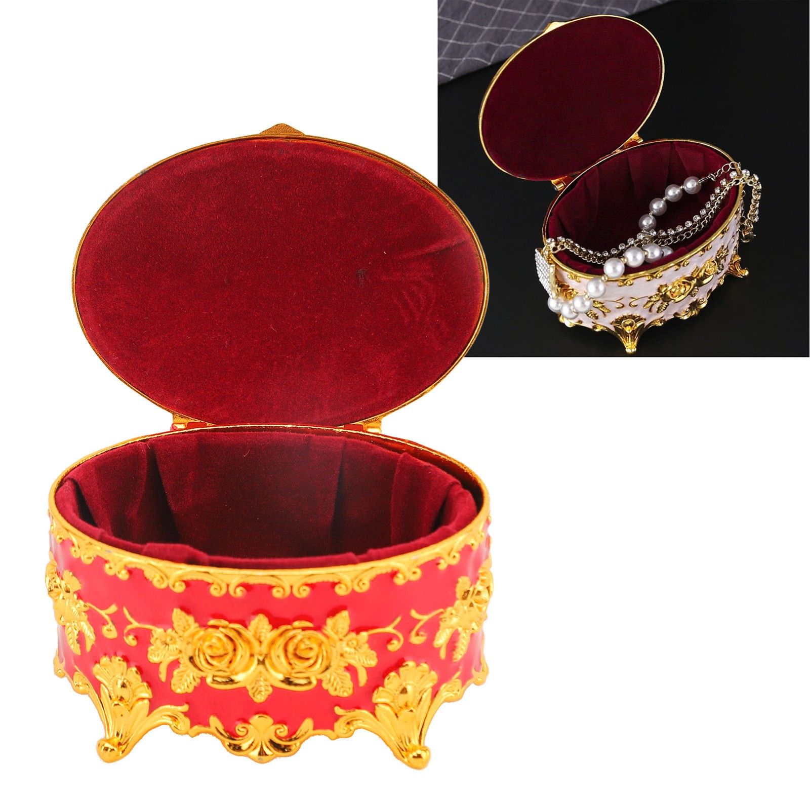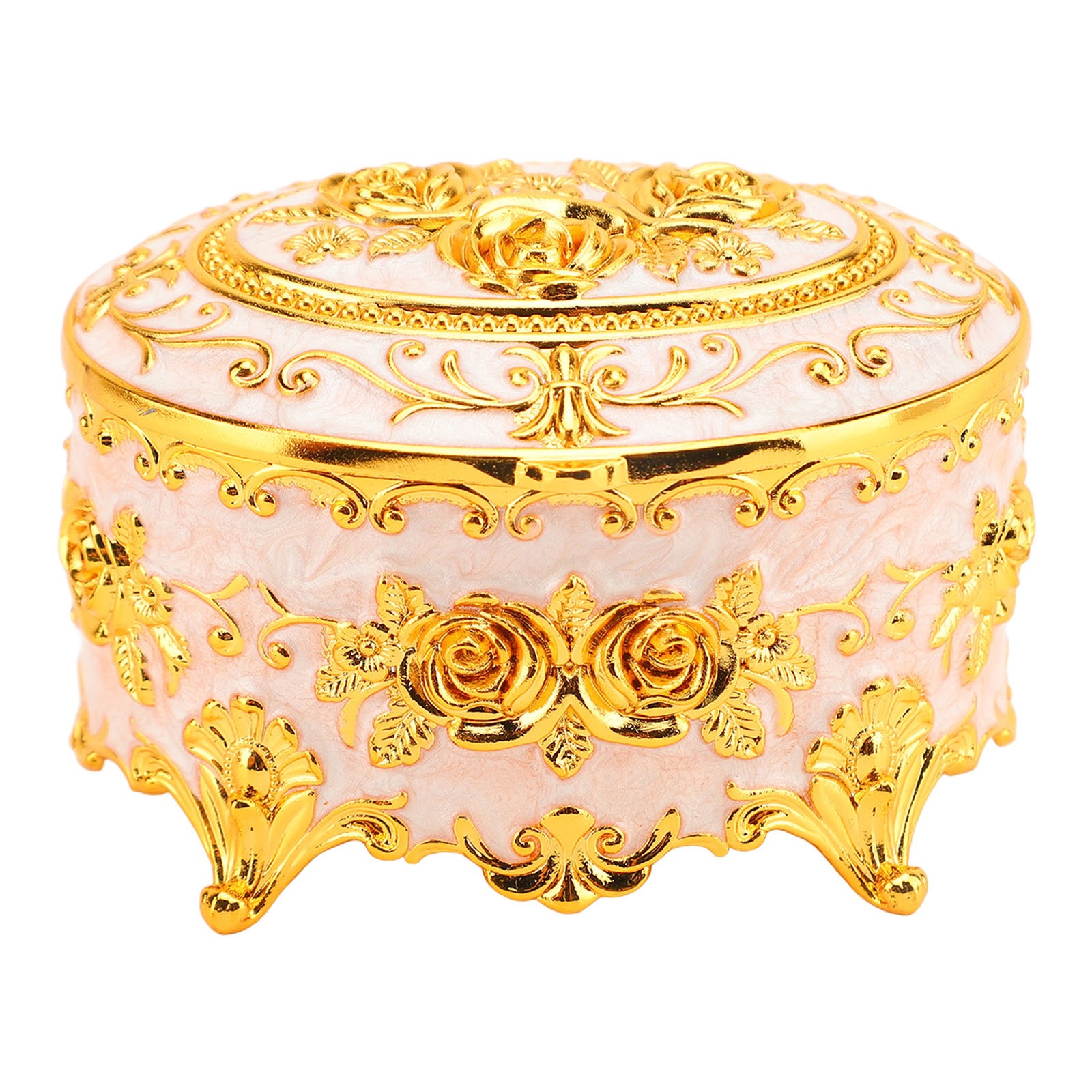 Vintage Round Jewelry Trinket Box Gold Small Earrings Necklace Storage Box