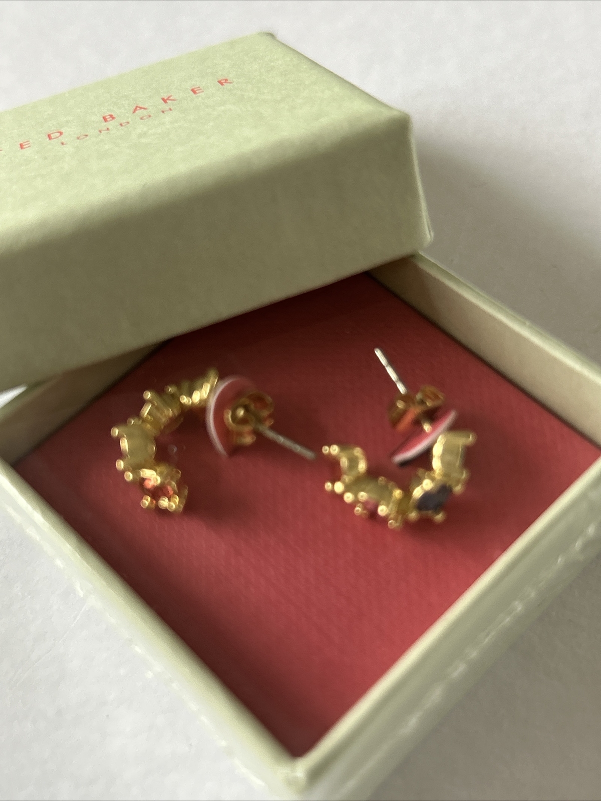 TED BAKER CRESITA RAINBOW CRYSTAL NANO SMALL HOOP EARRINGS GOLD TONE RRP £30