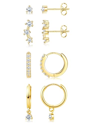 LOLIAS 4 Pairs Gold Earrings for Women Hypoallergenic Small Gold Stud Hoop Earrings for Women 14K Gold Plated Earring Stacks Earrings Sets for Multiple Piercings
