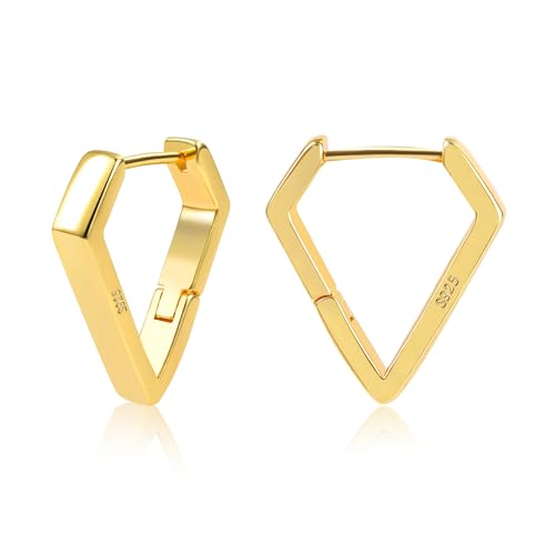 Roheafer Small Gold Hoop Earrings for Women Trendy - 14K Gold Plated Sterling Silver Huggie Earrings | Hypoallergenic Hoop Earring Stack | Chunky Thick Oval Square Triangle Hoop Earrings(Triangle-G)