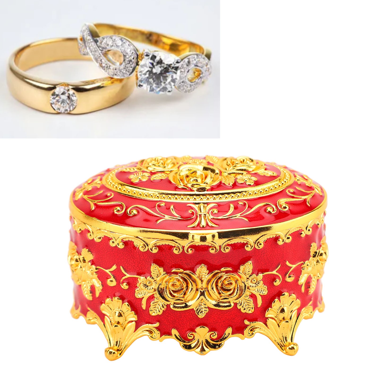 ¸Vintage Round Jewelry Trinket Box Gold Small Earrings Necklace Storage Box V