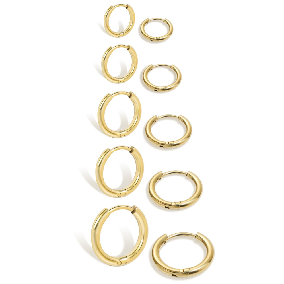 5 Pairs Titanium Stainless Steel Gold Hoop Earrings for Men Women Girls, Men Earrings Gold, Women Earrings Hoops, Small Hoop Earrings Gold Women Men