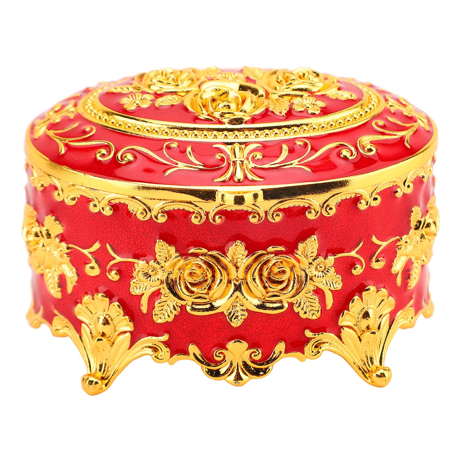 New Vintage Round Jewelry Trinket Box Gold Small Earrings Necklace Storage Box
