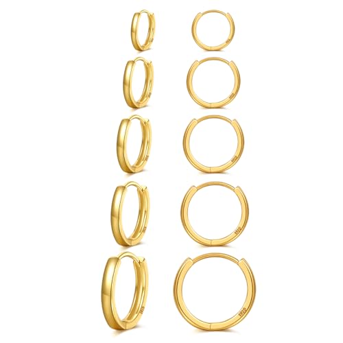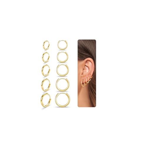 Senteria 5 Pairs Small Gold Hoop Earrings 14K Gold Plated Hoop Earrings for Women Hypoallergenic Huggie Hoops Earring Cartilage Sleeper Small Earring for Women 8/10/12/14/16mm