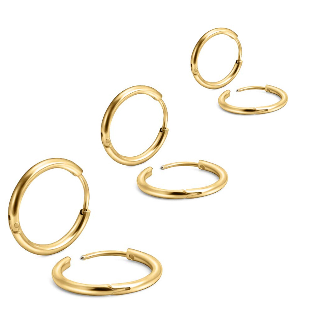 6Pcs 316L Surgical Stainless Steel Small Gold Huggie Hoop Earrings 6mm 8mm 10mm Hypoallergenic Earrings Hoop Cartilage Helix Lobes Hinged Sleeper Earr