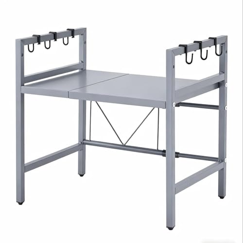 Homullel Expandable Microwave Oven Shelf Unit, Kitchen Countertop Microwave Stand with Shelves, Adjustable Kitchen Counter Rack Small Storage Shelving Unit, Desktop Printer Stand (Grey, 1-Tier)