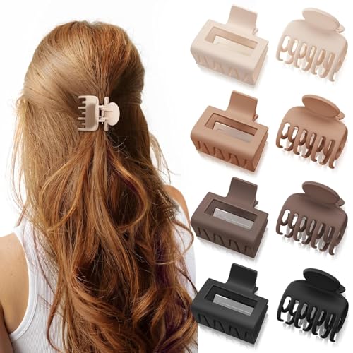 Hair Claw Clips | Small Claw Clips Hair Clips for Women| Rectangle Clips for Fine Hair Square for Thin Hair Accessories for Women (Brown Small)