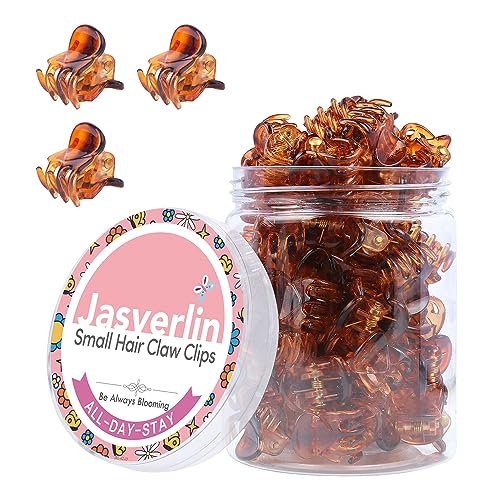 JASVERLIN Small Hair Clips Claw for Thin Fine Hair, Strong Grip Pain-Free Mini Tiny Clip 90s Accessories for Women Girls Kids Styling 50 pcs (Brown)