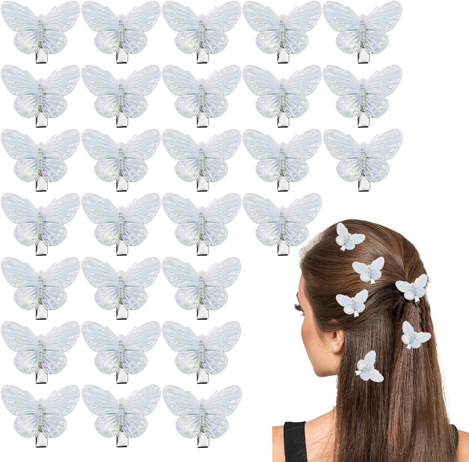 28PCS Small Butterfly Hair Clips, Mini Silver Butterfly Hair Clip Accessories fo