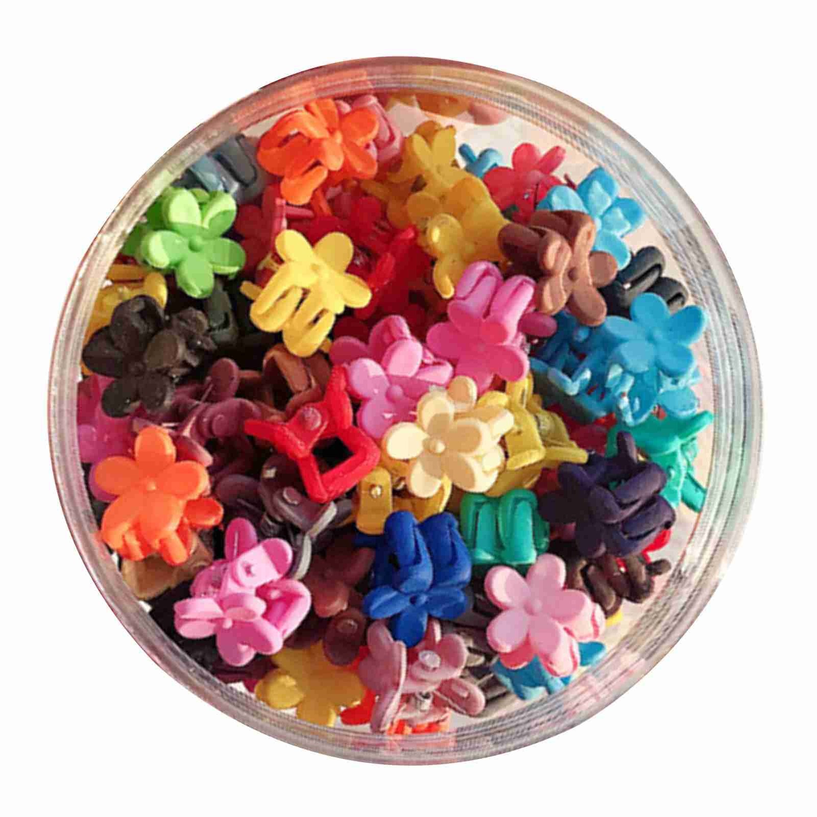 50Pcs Small Flower Hair Claw Clips Bright Color Cute Mini Hair Pins with Can