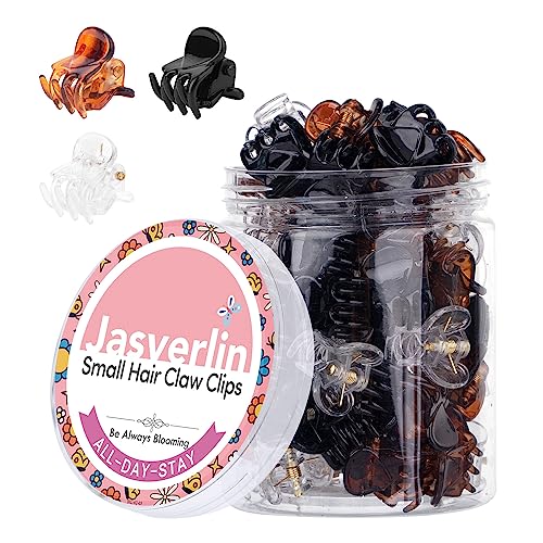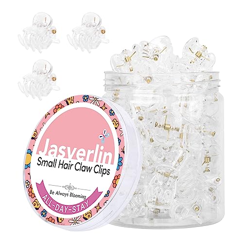 JASVERLIN Small Hair Clips Tiny Claw Clips, Fine Thin Hair Accessories Plastic Mini Clamps Clip for Women Little Girl Styling, Non-Slip Strong Grip Jaw 50pcs (Clear)