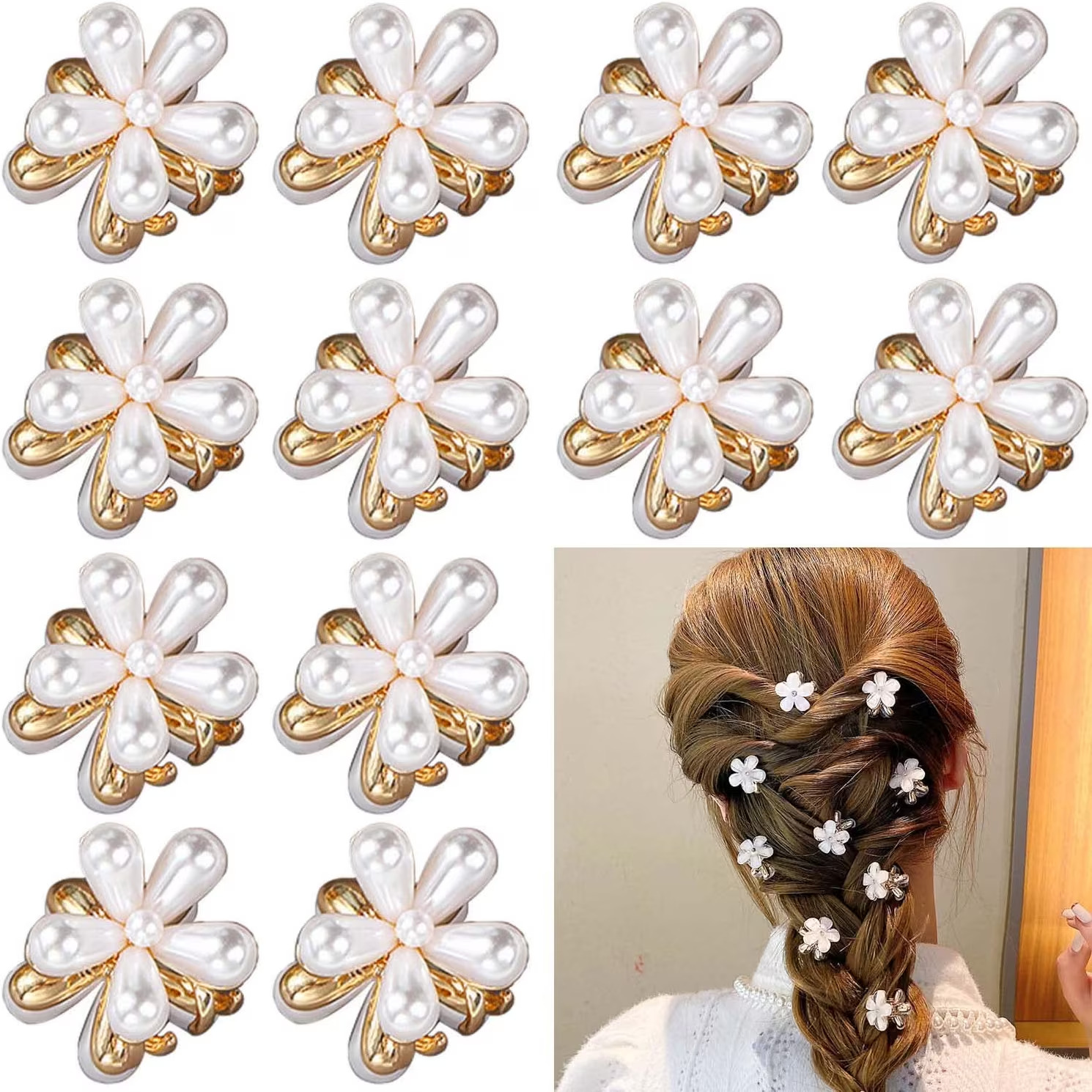 12x Small Pearl Hair Claw Clips, Mini Pearl Claw Clips Flower Claw Bangs Clips