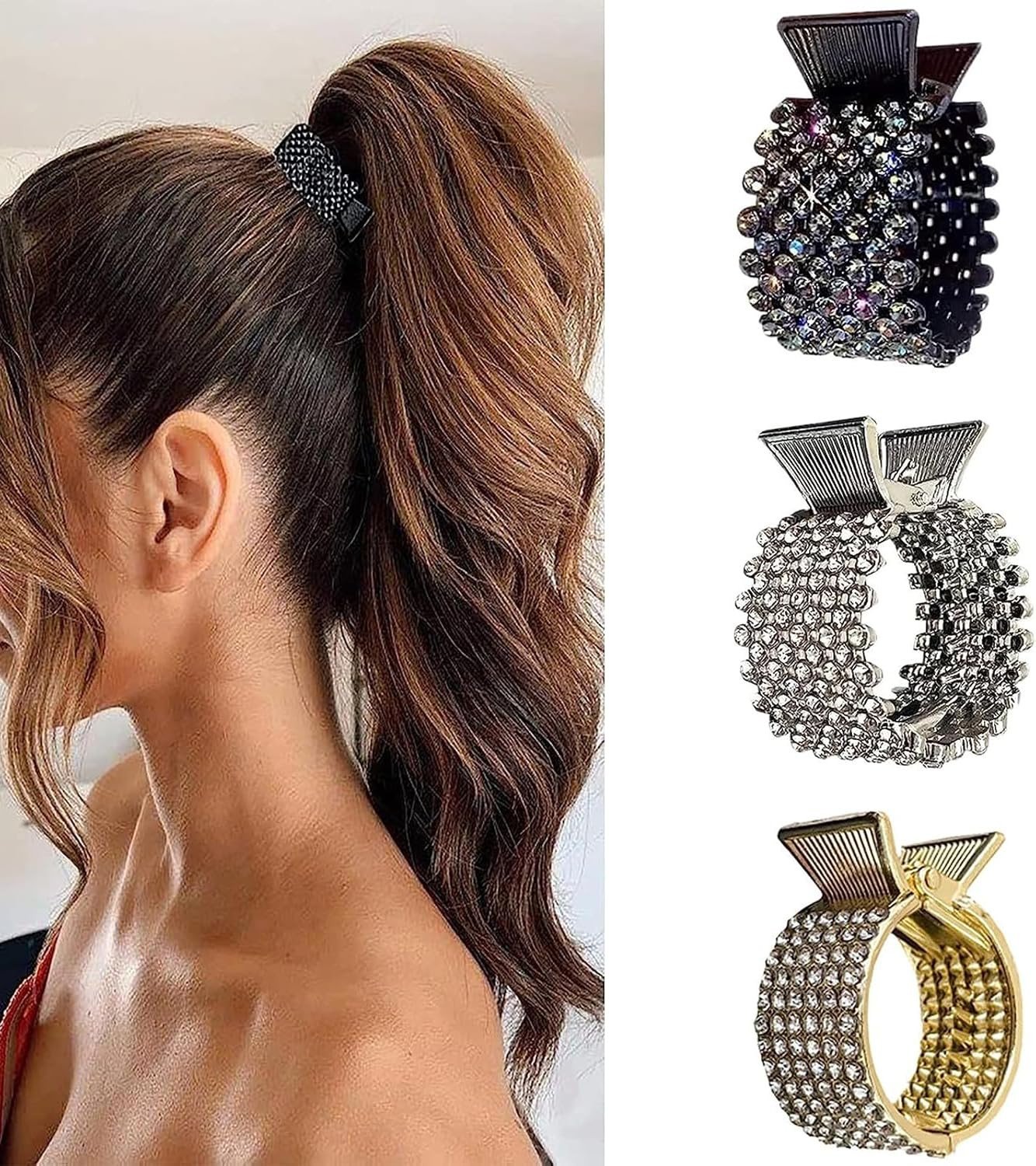 Women Small Hair Clips Barrettes Grips, 3 PC Hair Claw for High Ponytail Diamant