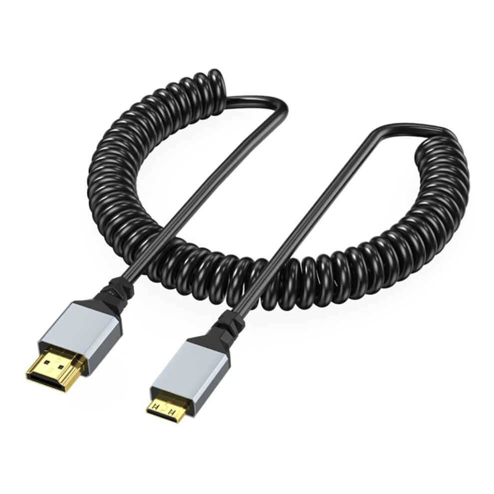 4K Small Video Cable Male to Male Coiled HDMI Cable 4K60Hz 90 Degree for GPU Laptops Tablets 50-200CM Retractable Design