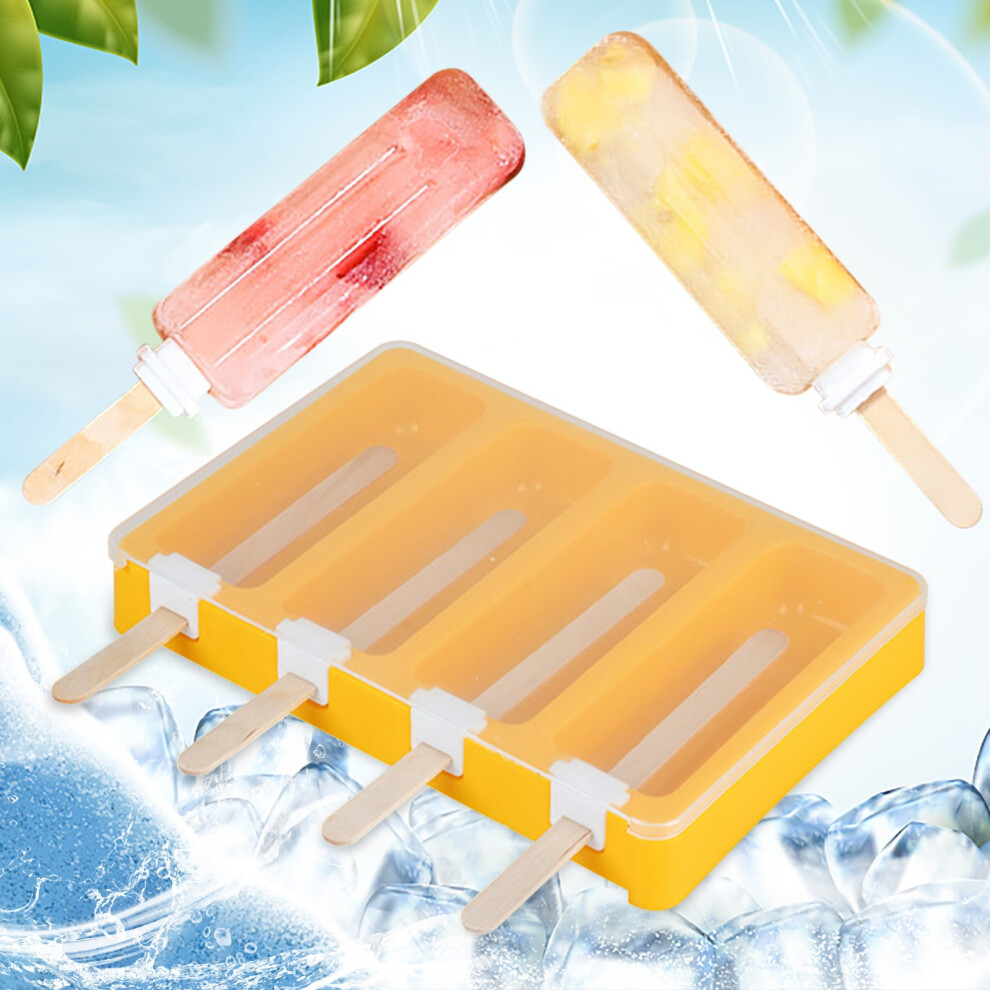 (Yellow) 2023 New Ice-cream Maker, Ice-cream Molds Ice Box Small Household Refrigerator Easy-release Ice-cream Molds With Cover Ice Lattice
