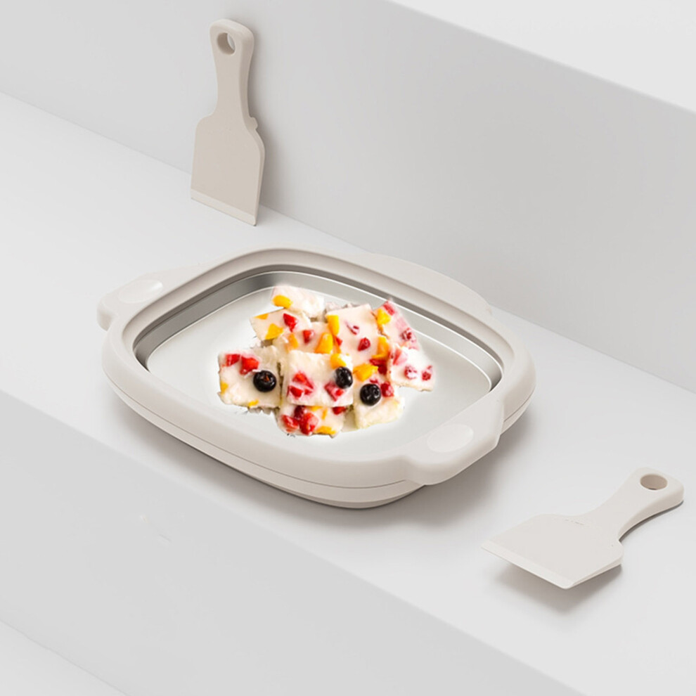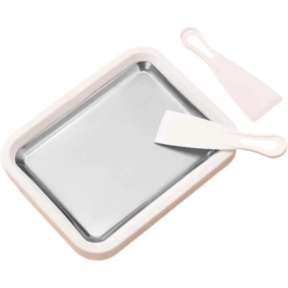 Ice Cream Roller Maker Pan with 2 Spatulas, Small DIY Ice Roll Machine (White)