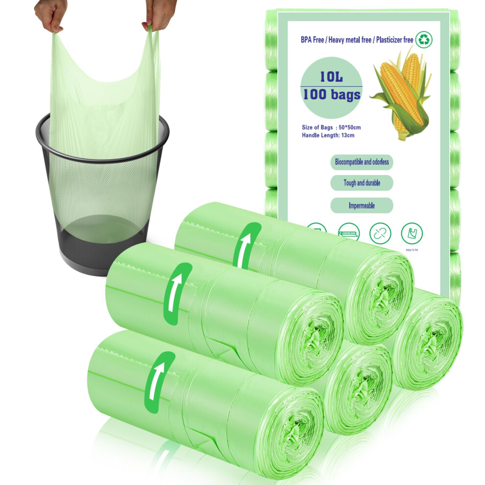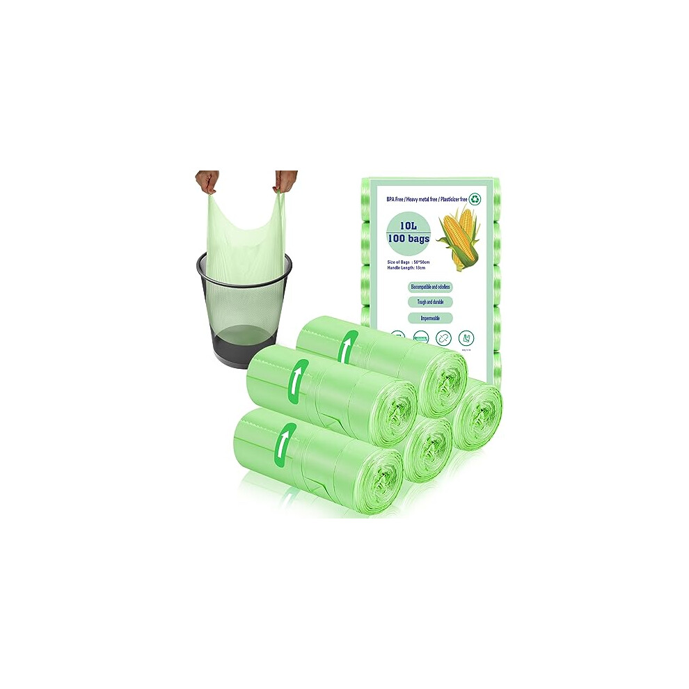100 x 10 Liter Green Bin Bags, 18.9 * 23.2in Portable Food Waste Bags Small Kitchen Bin Liners Food Caddy Bags with Handle for Office Bathroom Kitchen