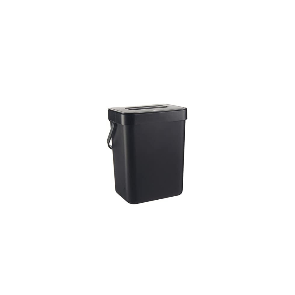 Organic Waste Bin - Small Kitchen Compost Bin with Handle and Lid, Black Food Waste Container for Countertop Use