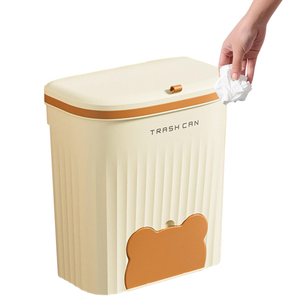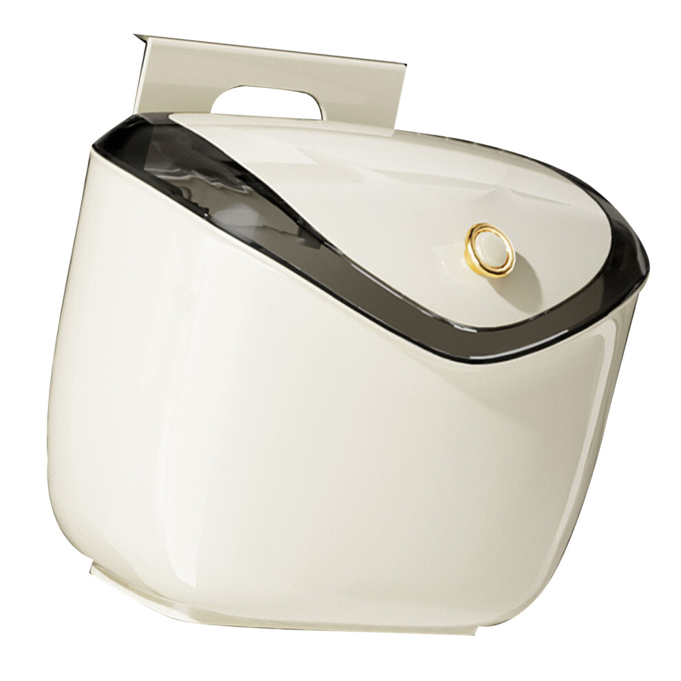 Hangable Trash Can - Small Creamy Kitchen Waste Bin with Lid for Toilet and Vanity Desktop Storage, Space-Saving Organizer