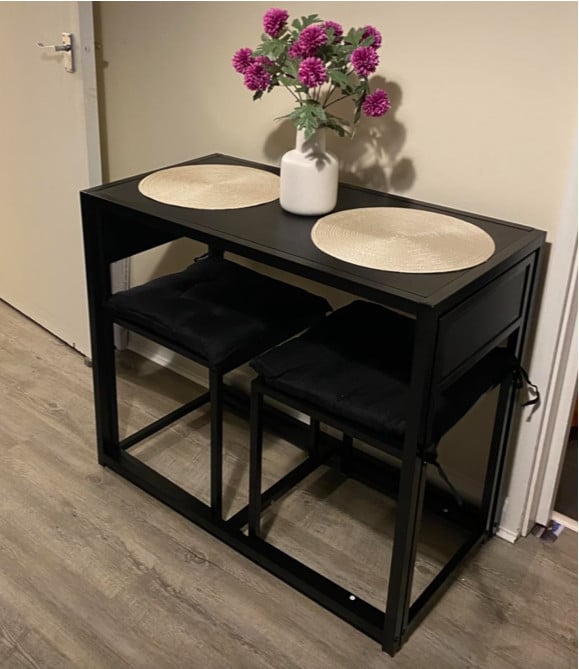 Small Dining Table and 2 Chairs Kitchen Breakfast Set Compact Wooden Metal Bar