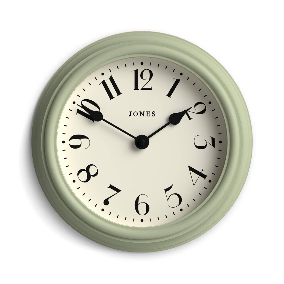 Jones Clocks® Frieze wall clock | Small elegant classic round clock | 23cm | Sage green | Pretty design ideal for the kitchen, living room, bedroom, large or small spaces