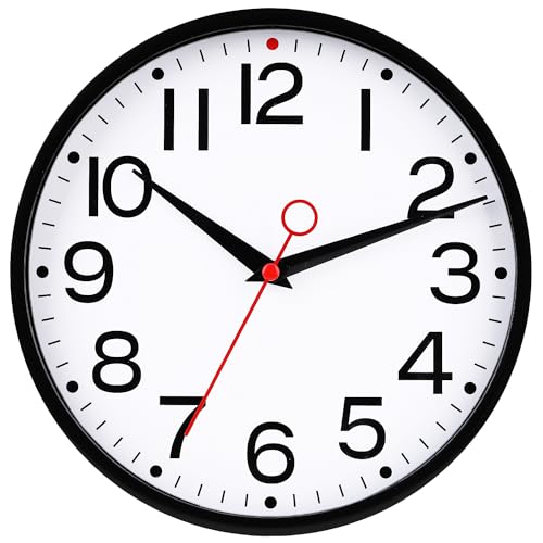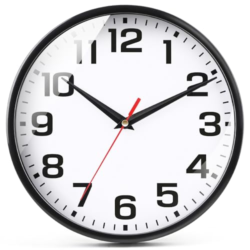 EMITDOOG Wall Clock Modern Kitchen Small Silent Analog Round Simple Quiet Quartz Black Wall Clocks Battery Operated Non Ticking for Bathroom Office Garage School