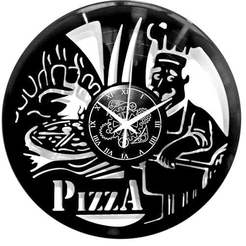 Instant Karma Clocks | Pizza Chef Wall Clock – Silent No-Ticking – Perfect for Pizzeria, Kitchen, Restaurant, Dining Area, Bistro | Modern Design Unique Decoration