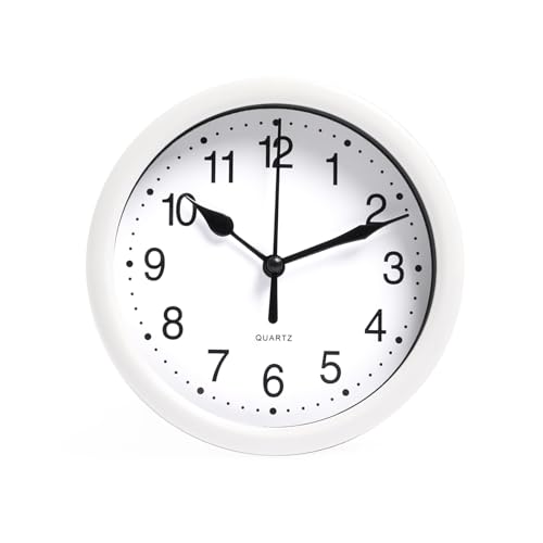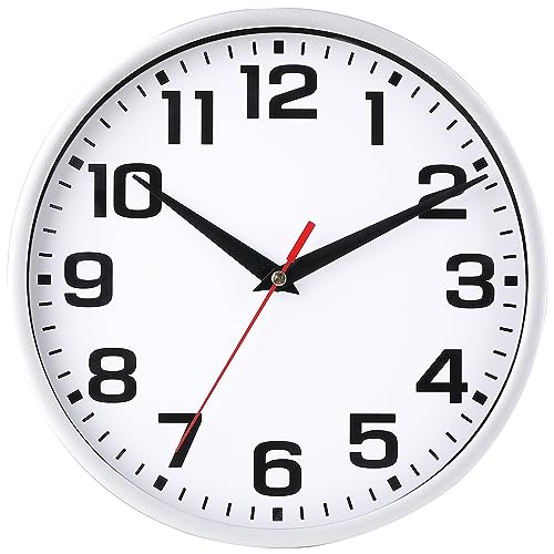 OHS Wall Clock, Small Round Clocks for Kitchen Living Room Office Bedroom, Round Clock Modern Home Decorative Large Numbers Easy To Read, White