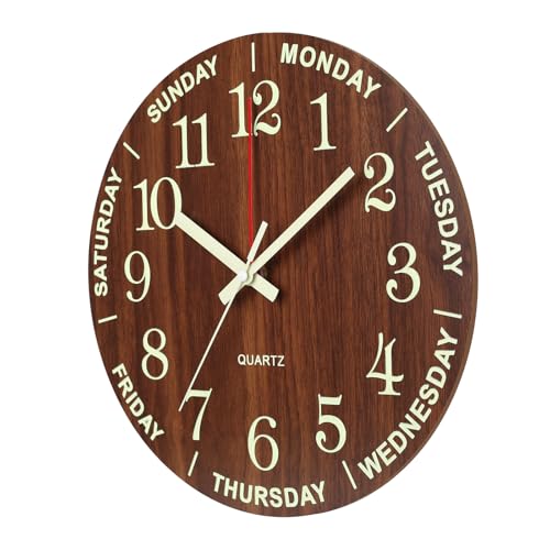 Wall Clock - 12 inch Large Wall Clocks Glow In the Dark Silent Night Lights Luminous Modern Small Vintage Black Retro White Outdoor Clock for Kitchen Bedrooms Bathroom Living Room Garden Kids