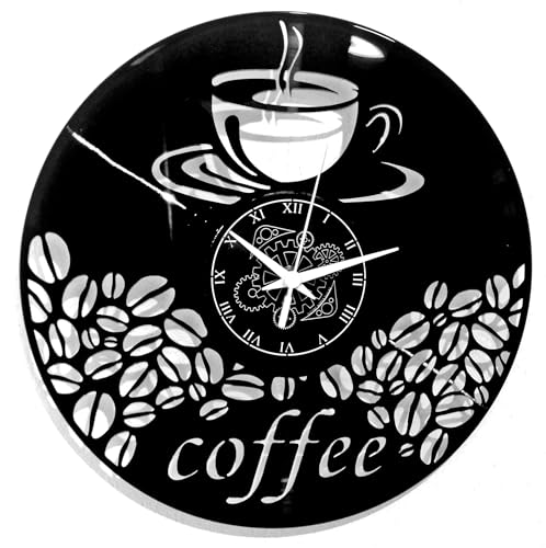 Instant Karma Clocks | Coffee Wall Clock | Steaming Cup and Coffee Bean Design | Silent Quartz Movement | Perfect for Cafés, Baristas and Kitchen Decor