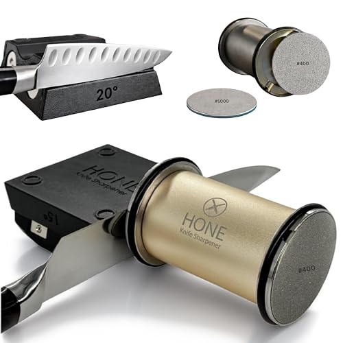 𝗛𝗢𝗡𝗘 𝗞𝗻𝗶𝗳𝗲 𝗦𝗵𝗮𝗿𝗽𝗲𝗻𝗲𝗿 Engineered in Canada, Kitchen Rolling Knife Sharpener with Ball Bearings, Detachable Dual-Sided Diamond Plates, Small Knives Slot, 20° & 15° Precision Sharpening
