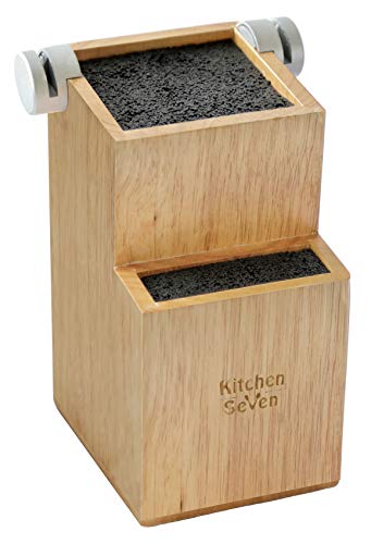 Bamboo Universal Knife Block - Knife Holder with 2 Built-in Knife Sharpeners - 2-Tiered Modern Knife Storage Up to 16 Large and Small Knives Easy Clean Wooden Knife Organizer by Kitchen Seven