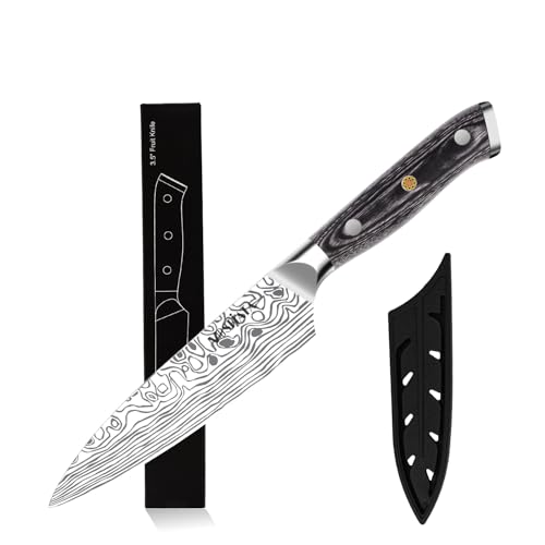 MOSFiATA 4 Inch Paring Knife, Ultra Sharp Small Kitchen Knife Fruit Knives with Sheath, German High Carbon Stainless Steel EN1.4116 Precision Cooking Vegetable Knife for Carving, Peeling, Trimming
