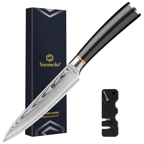Sunnecko Utility Knife 5 inch - Sharp Paring Knife with Damascus Steel VG10 Blade, Fruit Knife with Ergonomic Full Tang Handle Small Kitchen Knives