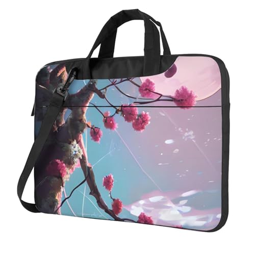 Small pink flowers Laptop Bag Portable Handbag, Safe Protective Inner Lining for Business Trip and Office Use, Black, 14 inch
