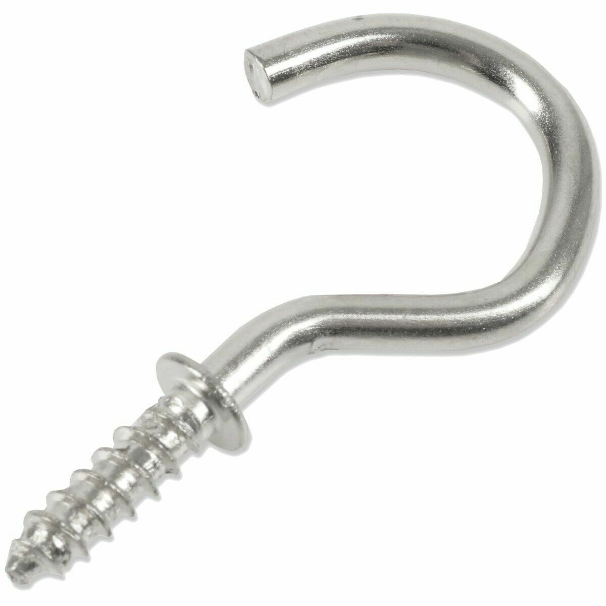 50x SMALL 19mm SCREW IN HOOKS Thick Strong Silver Metal Tool Shed Hang Loop Pegs