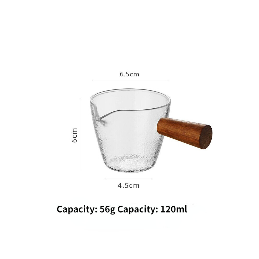 (a-01 120ML) Japanese 100-120ml Wooden handle Glass Coffee Mugs Small Milk Jug Solid Wood Handle Milk Pot Mug Coffee Cups Kitchen Accessories