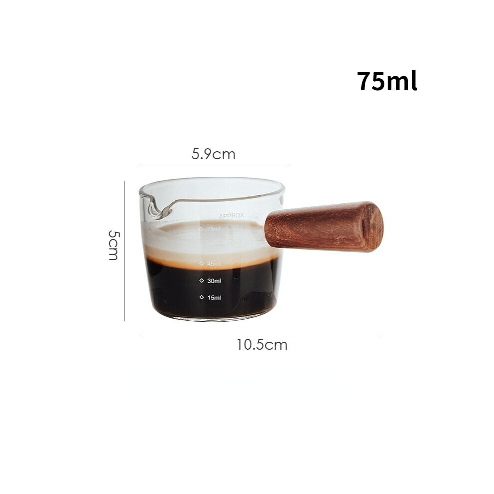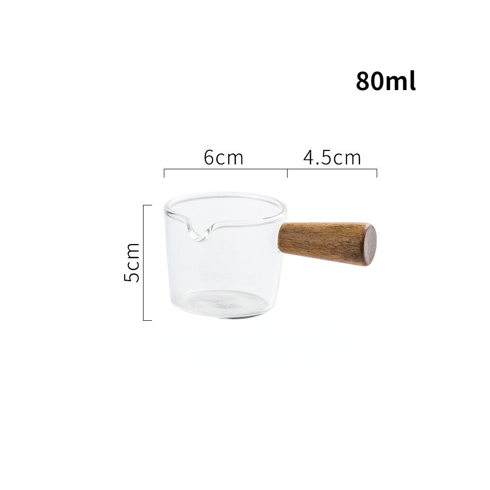 (a-Wooden handle 75ml) Glass Milk Jug Japanese Style with A Small Milk Pot Small Milk Cup Milk Jug Jar Seasoning Milk Cup Sauce Saucer Coffee Utensils